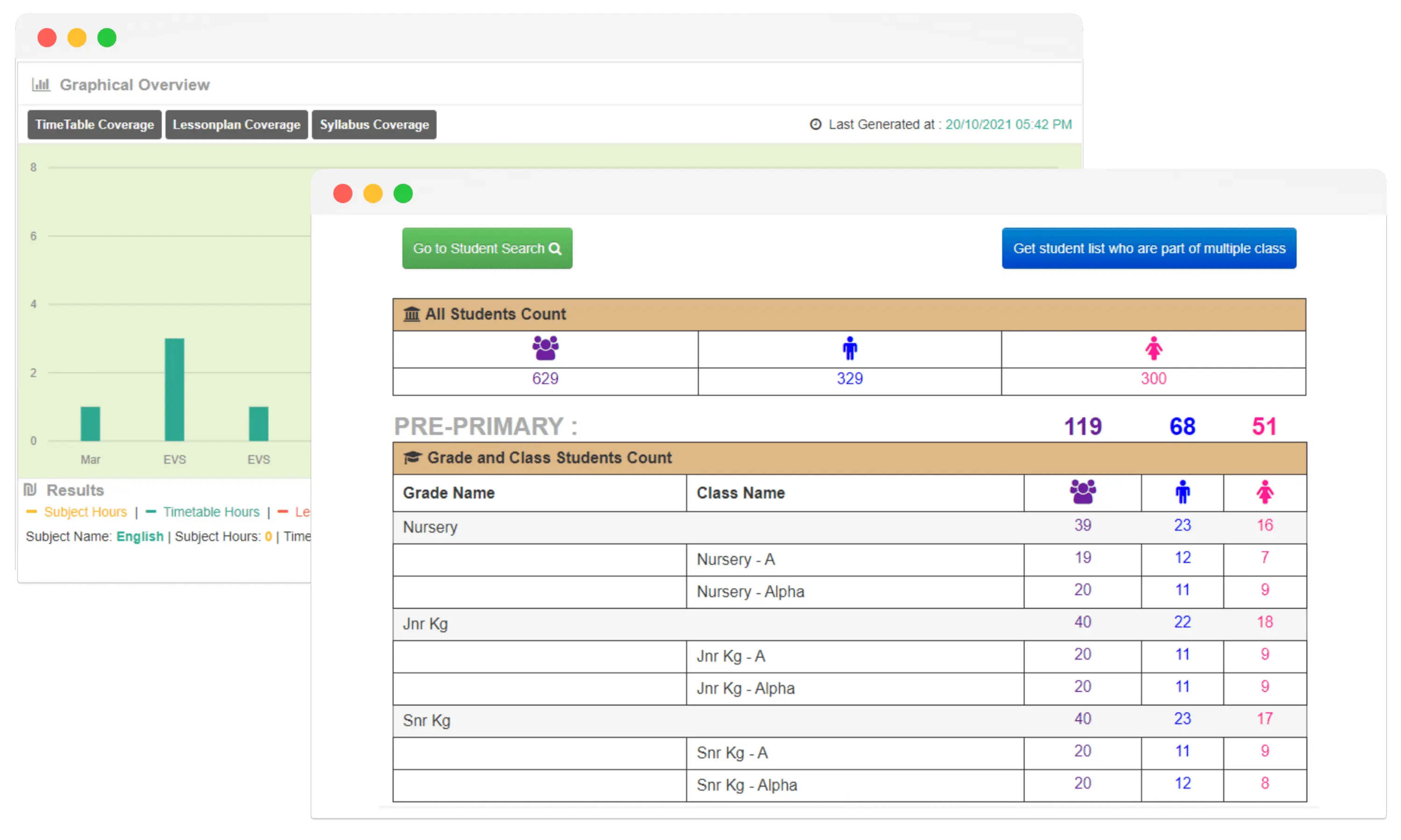 Using real-time information, track how your students are performing in their assessments, exams & assignments. Monitor their attendance statistics to take corrective measures.